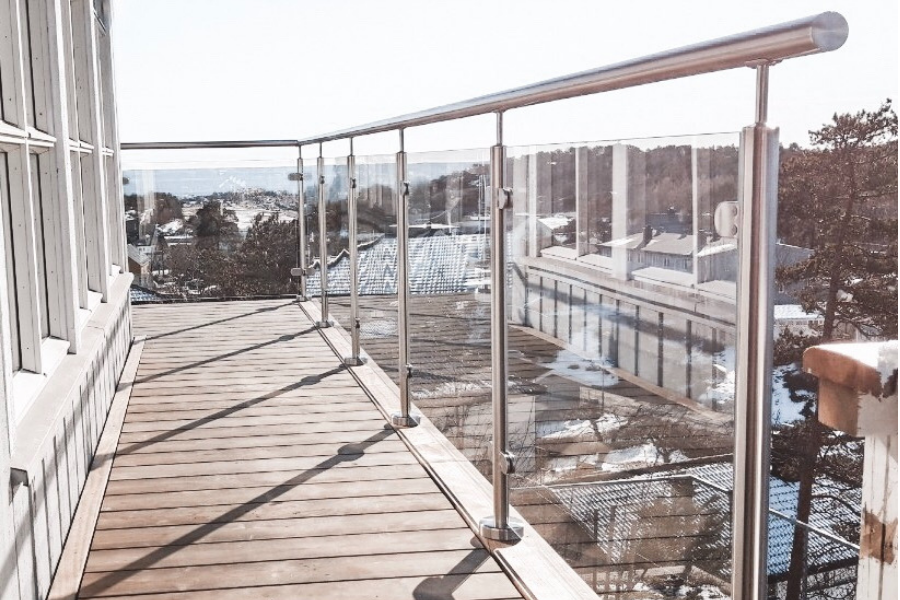 Kontakt OssGlassrekkverk med lakkerte aluminium stolper med eller uten håndløper